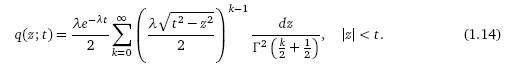 Распределение (1.14) –частное безусловное распределение случайного блуждания по плоскости (X(t), Y (t)) , t > 0 (со скоростью, равной 1), заданного формулой (1.3) в работе Orsingher, De Gregorio (2007).