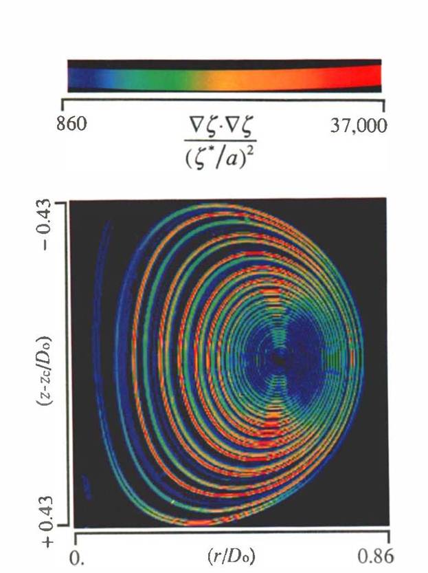 concentration field. Notice how the mixing rate diminishes towards the vortex center. This is because