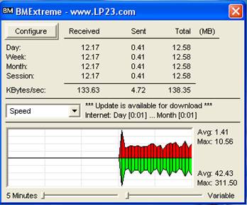 Это новое название хорошо известной многим программы Bandwidth Monitor. Ранее программа распространялась бесплатно, теперь же она имеет три версии, и бесплатной является только базовая. В этой версии не предусмотрено никаких возможностей, кроме, собственно, мониторинга трафика, поэтому вряд ли можно считать ее конкурентом других программ. По умолчанию BMExtreme следит как за Интернет-трафиком, так и за трафиком в локальной сети, однако мониторинг в LAN при желании можно отключить.