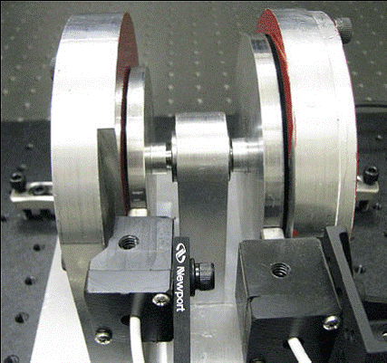 Рис.3. Прототип, сконструированный для демонстрации концепции dc-dc трансформатора, состоящего из пары проводящих дисков, вращающихся в магнитном поле.
